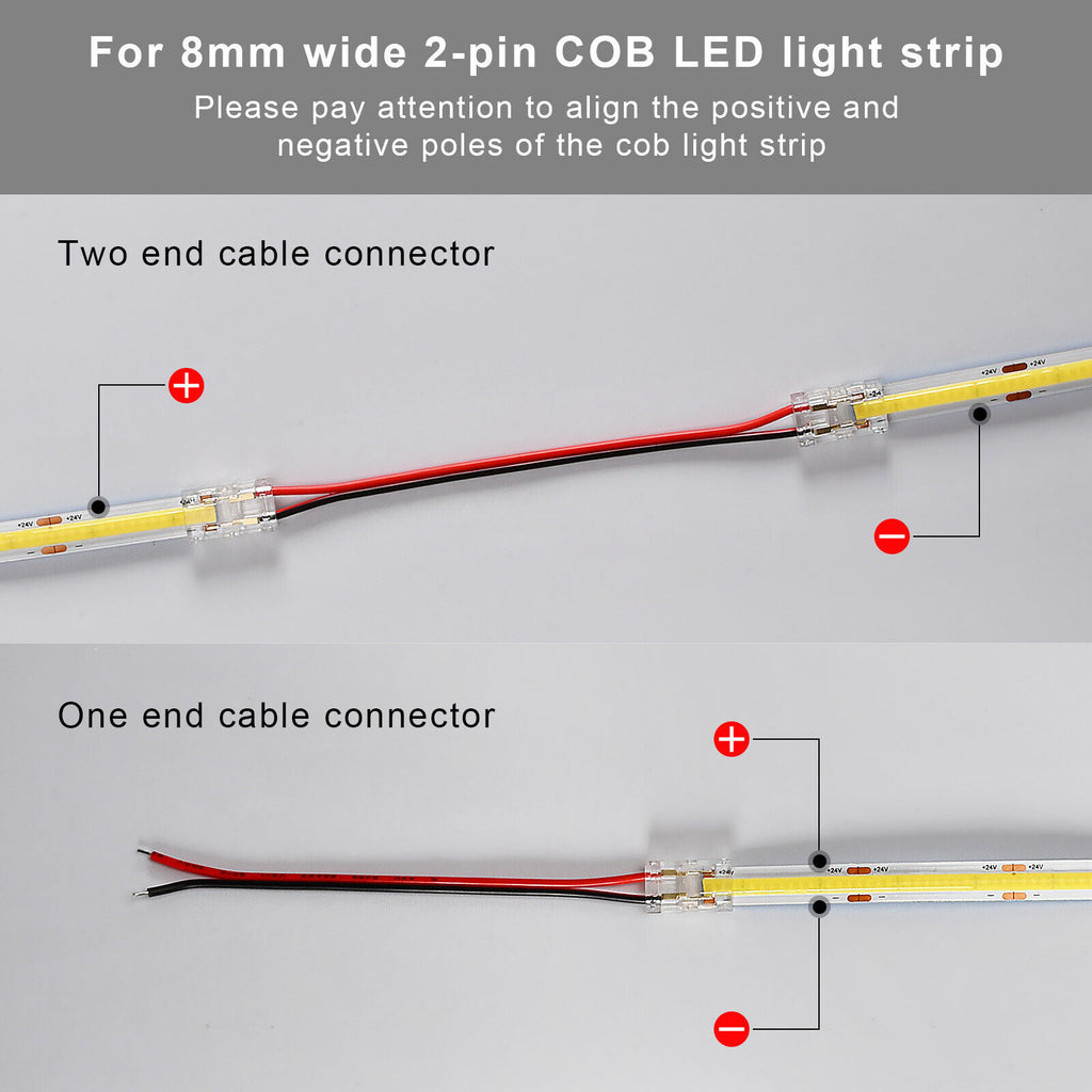 4pcs Double End Extension Wire Terminal Connectors for 8mm COB LED Strip